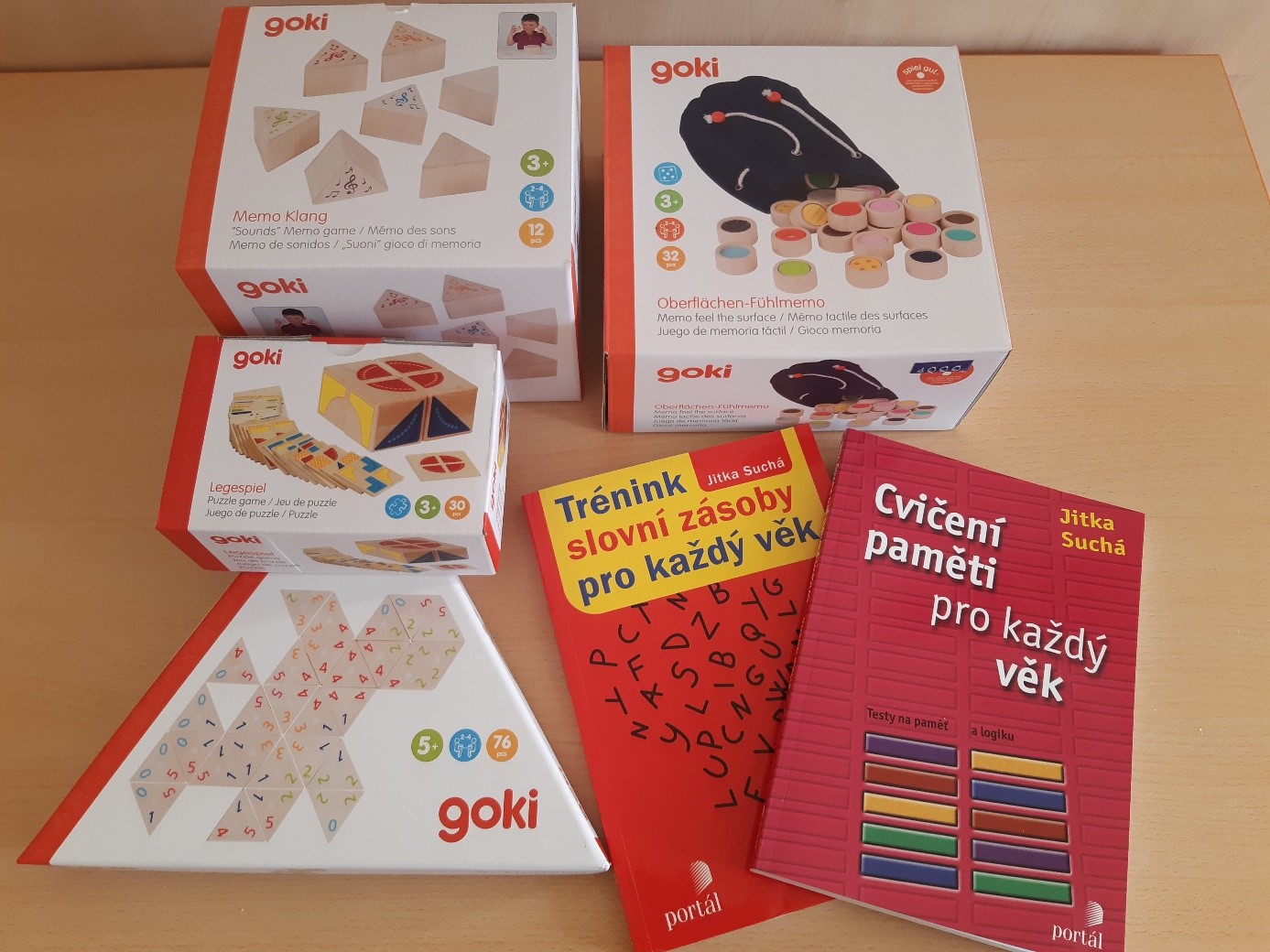 Práce s pomůckami umožňují klientovi rozvíjet rozumové, prostorové a smyslové vnímání, logické myšlení, pamět, pozornost, slovní zásobu, jemnou či hrubou motoriku.