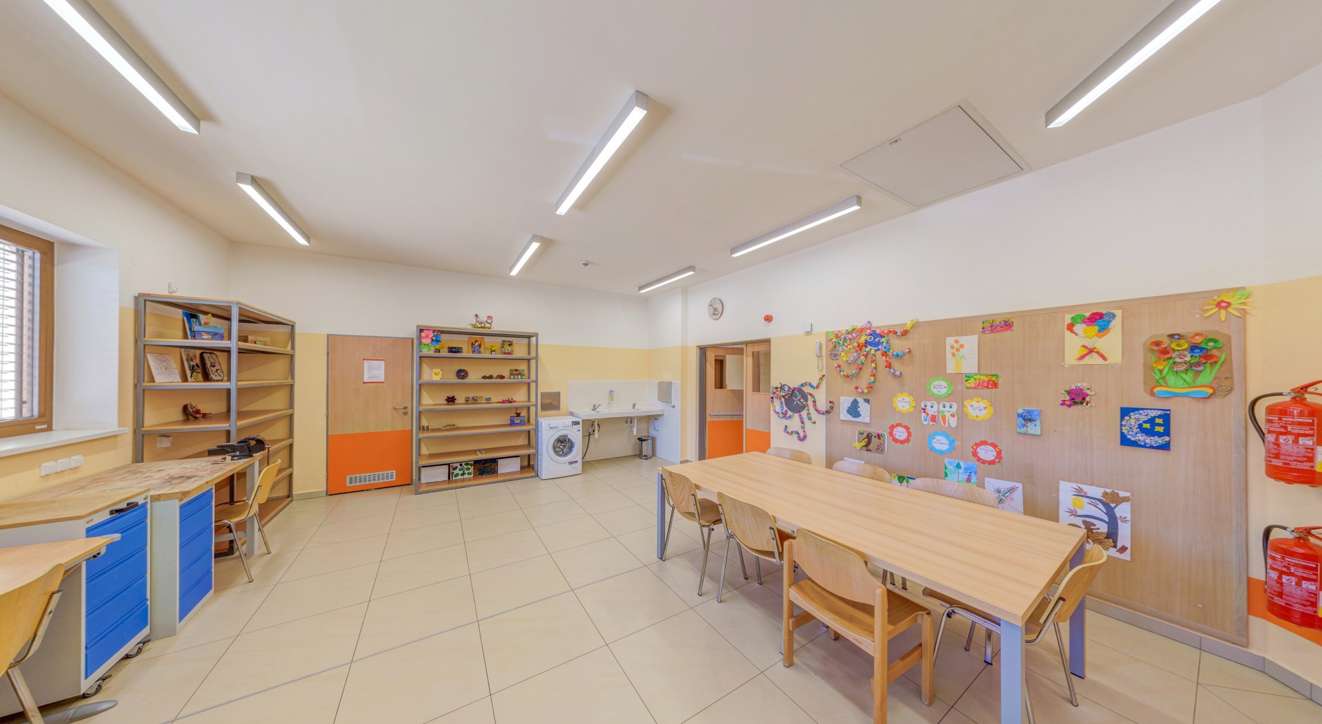 V terapeutické dílně klienti získávají a upevňují své dovednosti prostřednictvím práce s různými materiály jako je dřevo, tkanina, keramická hmota a rozvíjejí tak svou fantazii, pečlivost a kreativitu. Dílna je vybavena interaktivním monitorem, který je využíván k besedám, osvětě, rozvoji orientace i sledování filmů.