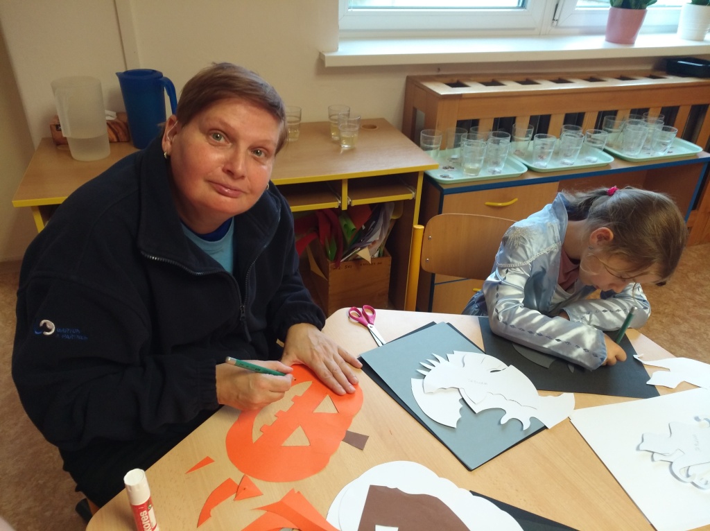 V úterý 31. října se klienti zúčastnili zábavného dopoledne s dětmi z Mateřské školy ve Chválkovicích. Během návštěvy ve školce si nejprve prohlédli její prostory a paní učitelky jim vysvětlily chod školky, včetně popisu aktivit dětí, kterým se zde věnují. V rámci připraveného programu se klienti s dětmi zapojili do společného výtvarného tvoření z papíru na téma halloween, zavzpomínali si na svá dětská léta při společných hrách a vyzkoušeli si pohybové aktivity se zábavnými cvičebními prvky na připravené dráze. Pro všechny to bylo příjemně prožité dopoledne a doufají, že nezůstane jediné.