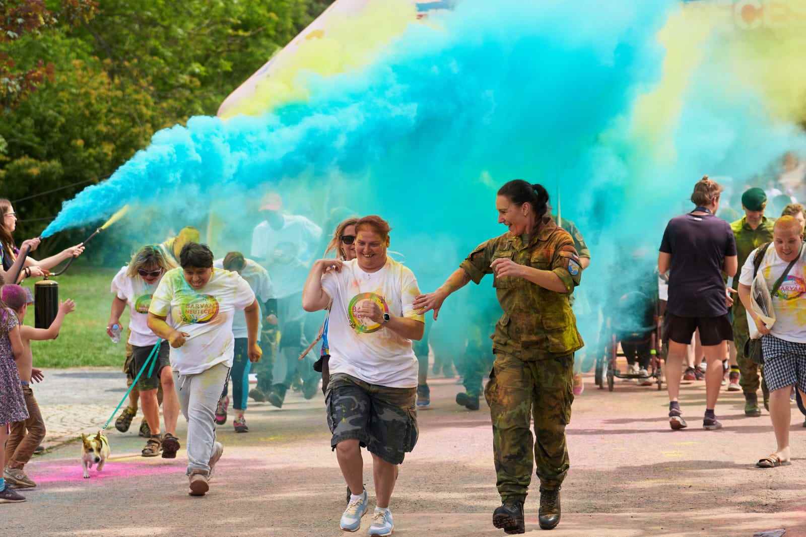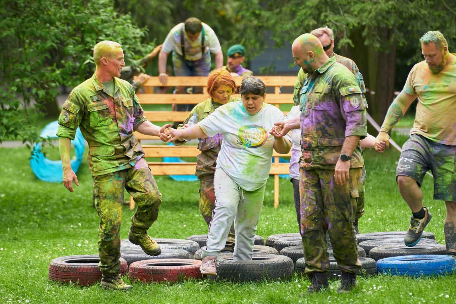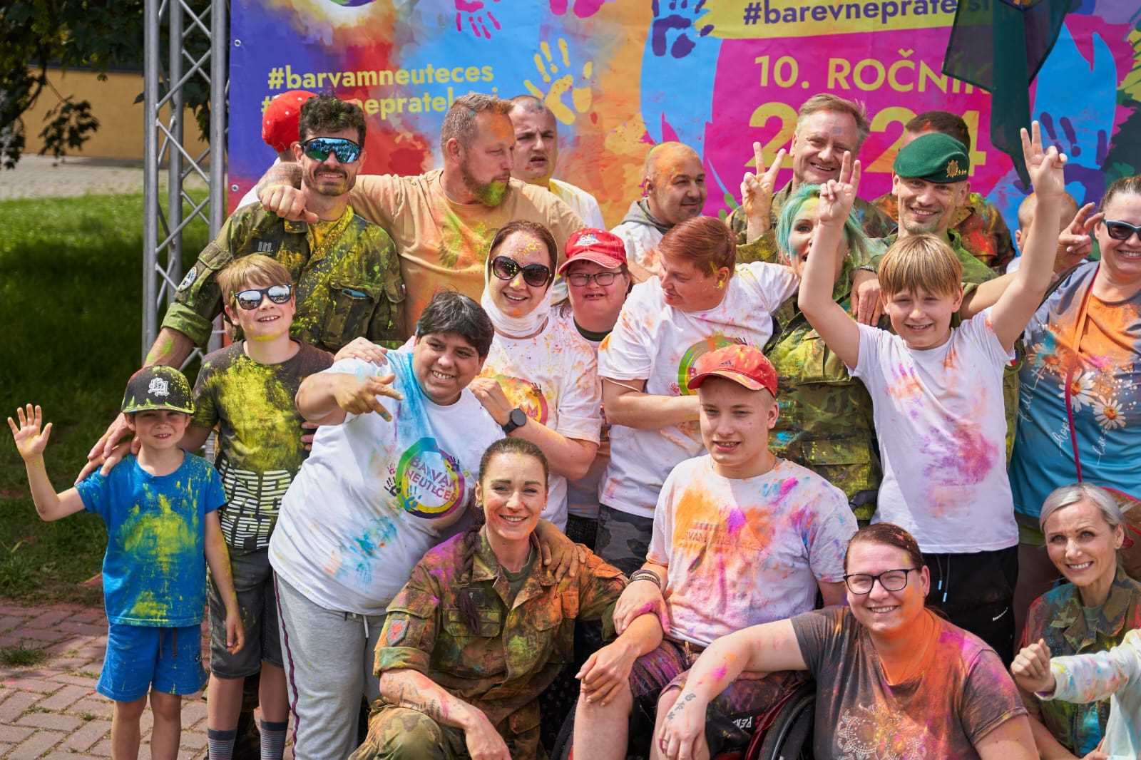 Společně se všemi klienty z Chráněného bydlení Domov jsme se zúčastnili úžasné akce Barvám Neutečeš. Akce byla plánována ve spolupráci s vojáky, kteří nás doprovodili z CHB na akci a zpět. Každý z nás od nich obdržel tričko s logem akce a další dary. Díky nim jsme měli skvělou podporu a odvahu překonat 1,5 km plných explozí barev a překážek. Večer jsme se unavení, ale spokojení vrátili s krásnou medailí a vzpomínkami na nezapomenutelný den. Děkujeme vojákům ze 7. mb, 73. tankového praporu a organizátorům akce Barvám Neutečeš za tento fantastický den!