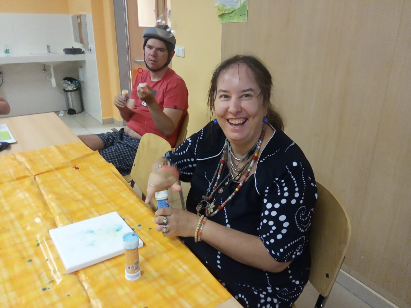 Letošní červenec jsme završili naší každoroční uměleckou akcí, při které se tentokrát snoubily arteterapeutické účinky barevných bublin se šťavnatým melounem. Jak taková kombinace vypadá? Jako báječné odpoledne plné smíchu, barev a stimulace dýchacího ústrojí. Naši klienti totiž vytvářeli jedinečná abstraktní díla tím, že foukali barevné bubliny na plátno, čímž vznikla vždy originální a navíc ještě společná práce, protože na jednotlivých obrázcích spolupracovalo vždy více klientů.