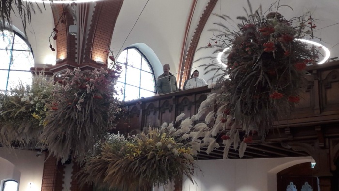 Již se stalo tradicí, že při příležitosti akce Rozkvetlé památky vyrážíme do centra na prohlídku sakrálních staveb vyzdobených živými květinami. Letos jsme stihli navštívit Červený kostel v Bezručově ulici a nedaleký kostel Husova sboru. Současně s květinovou výzdobou probíhala v Červeném kostele také výstava historických kuchařek a prvorepublikové gastronomie, kterou jsme si prohlédli. Do kostela Církve československé husitské jsme někteří zavítali úplně poprvé. Měli jsme zde možnost si nejen prohlédnout krásnou květinovou výzdobu, ale také si osobně popovídat s floristkou, autorkou výzdoby, která nám řekla proč a jaké květiny zvolila a kdo jí s aranžováním pomáhal. Strávili jsme tak příjemné dopoledne obklopeni květinami.