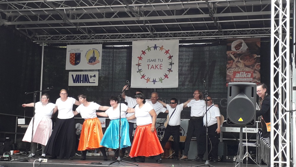 Letos jsme už po čtvrté měli možnost zúčastnit se festivalu nejen pro zdravotně postižené Jsme tu také v Prostějově. Náš tanec doprovázela píseň Nic nás nezastaví a jelikož jsme s touto choreografií vystupovali premiérově, tak jsme měli velkou trému. Ta opadla po našem vystoupení a naplno jsme si mohli užít výkony ostatních zúčastněných. Čas mezi generálkou a vystoupením jsme strávili díky doprovodnému programu v kavárně, procházkou městem a také prohlídkou místního muzea. Celé odpoledne slovem provázela a jednotlivé účastníky přestavovala moderátorka rádia Haná Martina Kvítko Procházková, se kterou se už všichni dobře známe. Unaveni po celém dni jsme v podvečerních hodinách dojeli domů a pomalu se začneme připravovat na příští ročník.