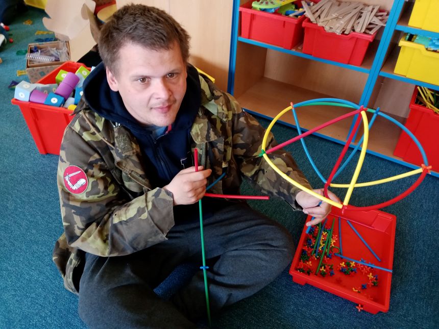 Druhá část návštěvy se odehrála v oddělení nejmenších dětí, kde si klienti vyzkoušeli chození na připravené sportovní dráze, tvoření z keramické hlíny, magnetickou stavebnici a další zajímavé hry. Nakonec si klienti spolu s dětmi zazpívali několik písniček a vzájemně si popřáli krásné Velikonoce. Při rozloučení se všichni shodli, že už teď se těší na další setkání.