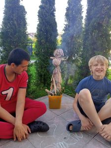 S kluky jsme si dopoledne vyrobili čarodějnici a hodili k ní klacíky k zapálení. Jelikož byl den pálení čarodějnic a byl krásně slunečný. Po obědě co jsme si odpočali, jsme šli všichni společně čarodějnici v kyblíku zapálit. Ta hořela ! Kluci měli radost a smáli se. K tomu jsme si zazpívali a dali si u stolu nějaké ty dobroty v podobě křupek a bonbonu. Naštěstí shořela jen čarodějnice a kluci to přežili ve zdraví.