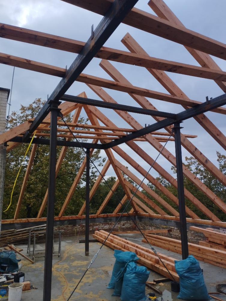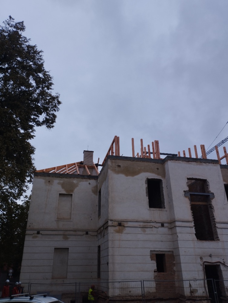 Ustředním tématem pokračující rekonstrukce Domina je instalace střešní konstrukce. Aktuálně se upravují trámy a krovy a umisťují se na příslušné místo.
