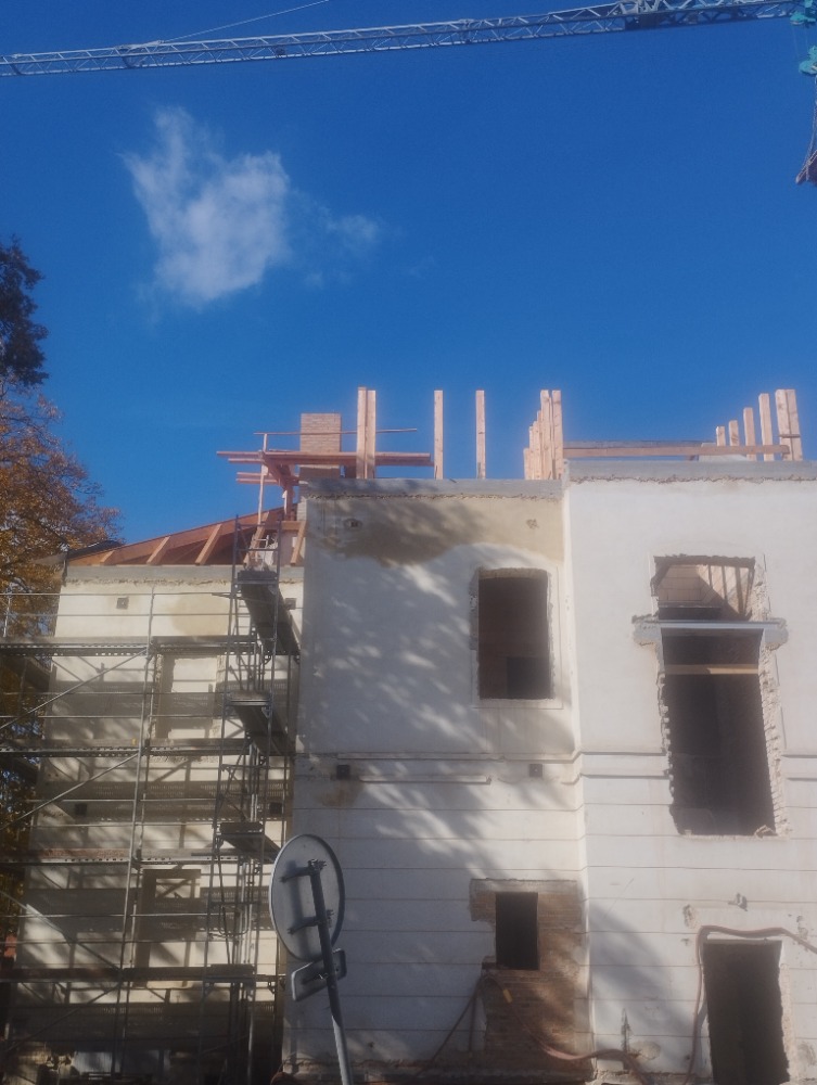 Momentky z rekonstrukce Denního stacionáře Domino. Těžká technika v akci, brzy budeme mít novou střechu!