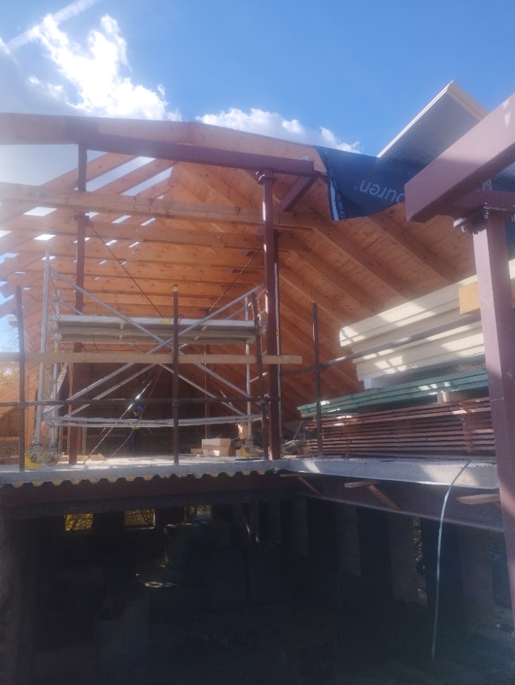 - pokračuje instalace konstrukce střechy na objektu A i B,