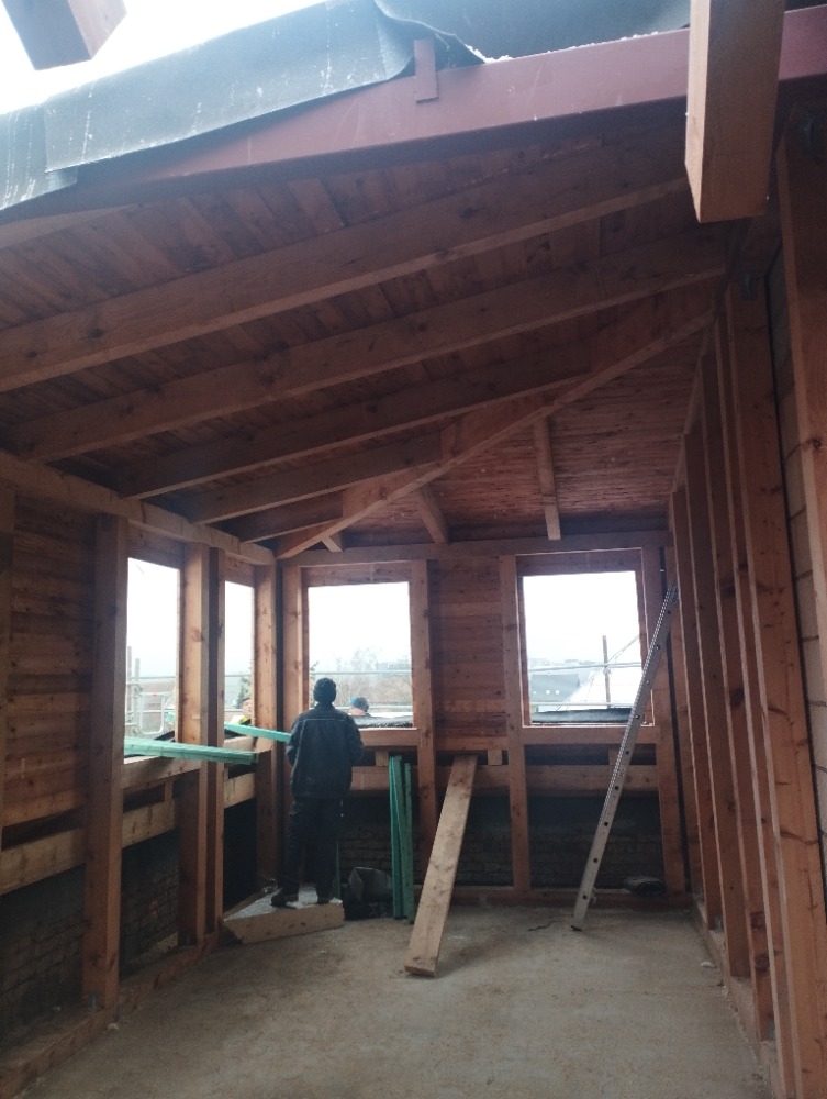 - dodělávání střešní konstrukce, včetně instalace izolace,