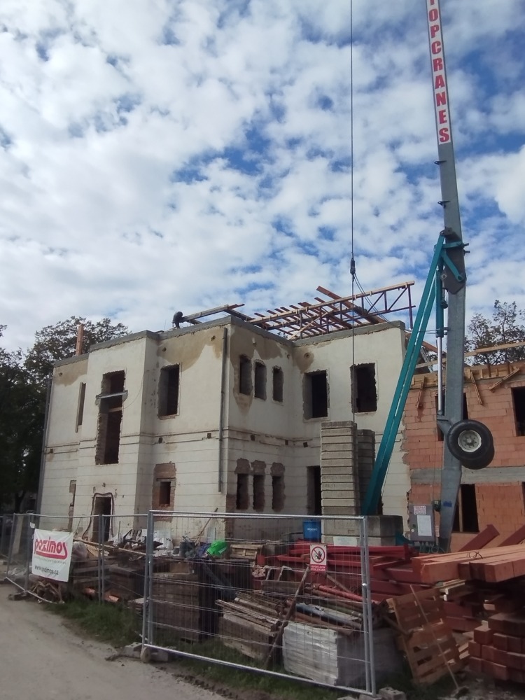 Momentky z rekonstrukce Denního stacionáře Domino. Těžká technika v akci, brzy budeme mít novou střechu!